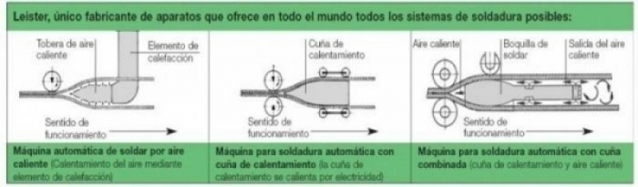 Eficiente soldadura de lonas con aire caliente. Calentamiento electrónicamente regulado con pantalla digital