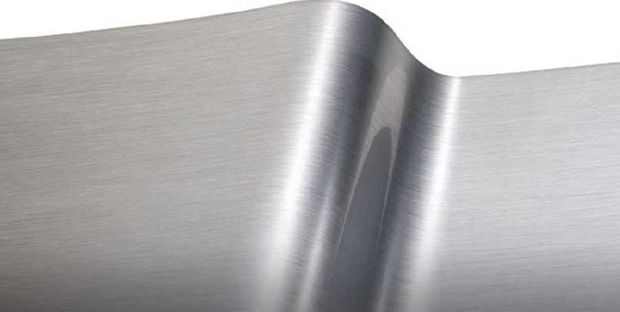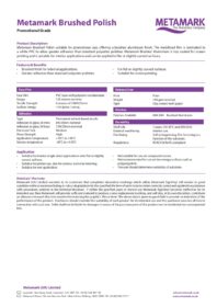 Una película decorativa de poliéster metalizado con pulido cepillado laminada sobre un PVC blando. La película de 125 micras ofrece una mayor adherencia que los pulimentos de poliéster tradicionales. Metamark MM-SBA tiene un acabado de aluminio cepillado.